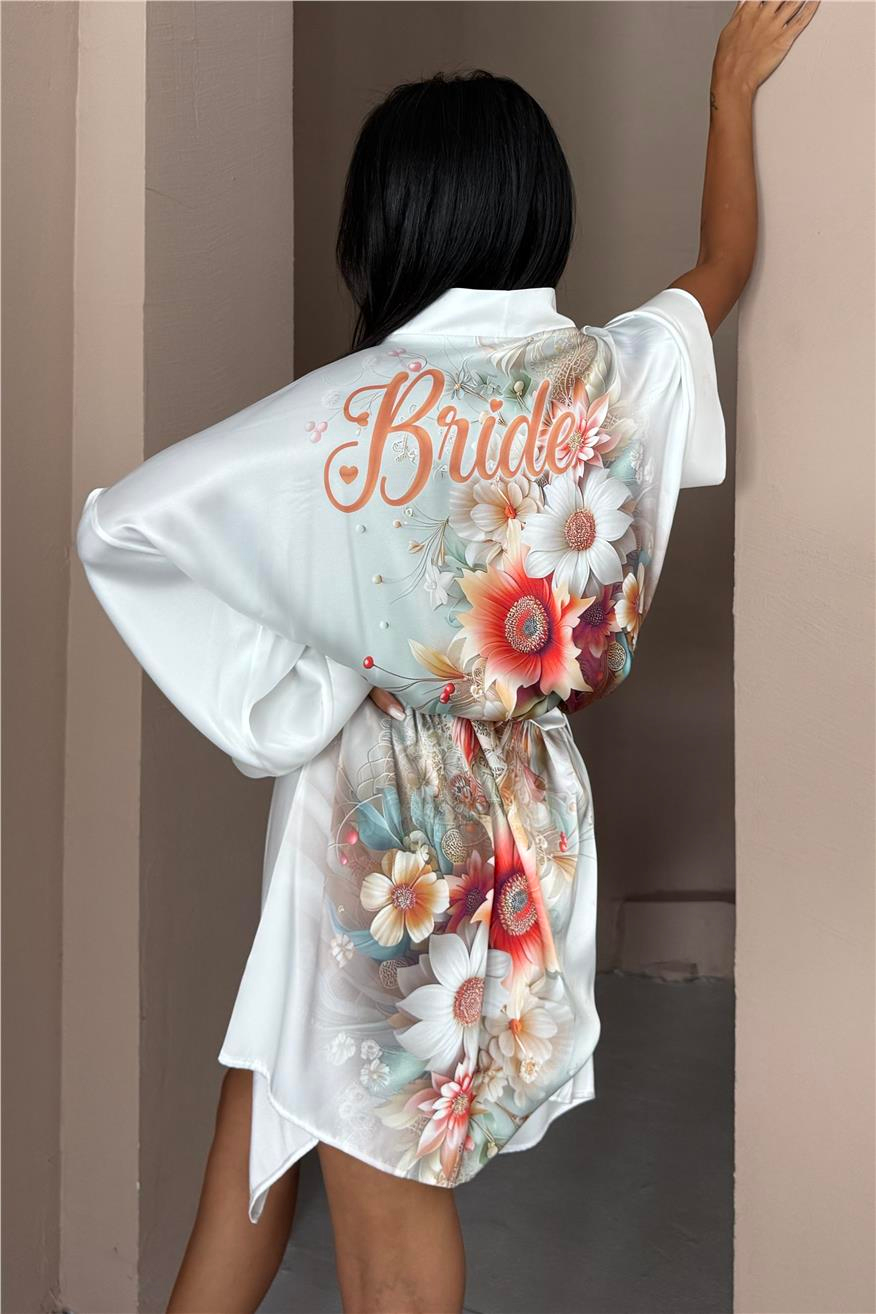 Fiorita Bride Şifon Saten Kimono / Sabahlık