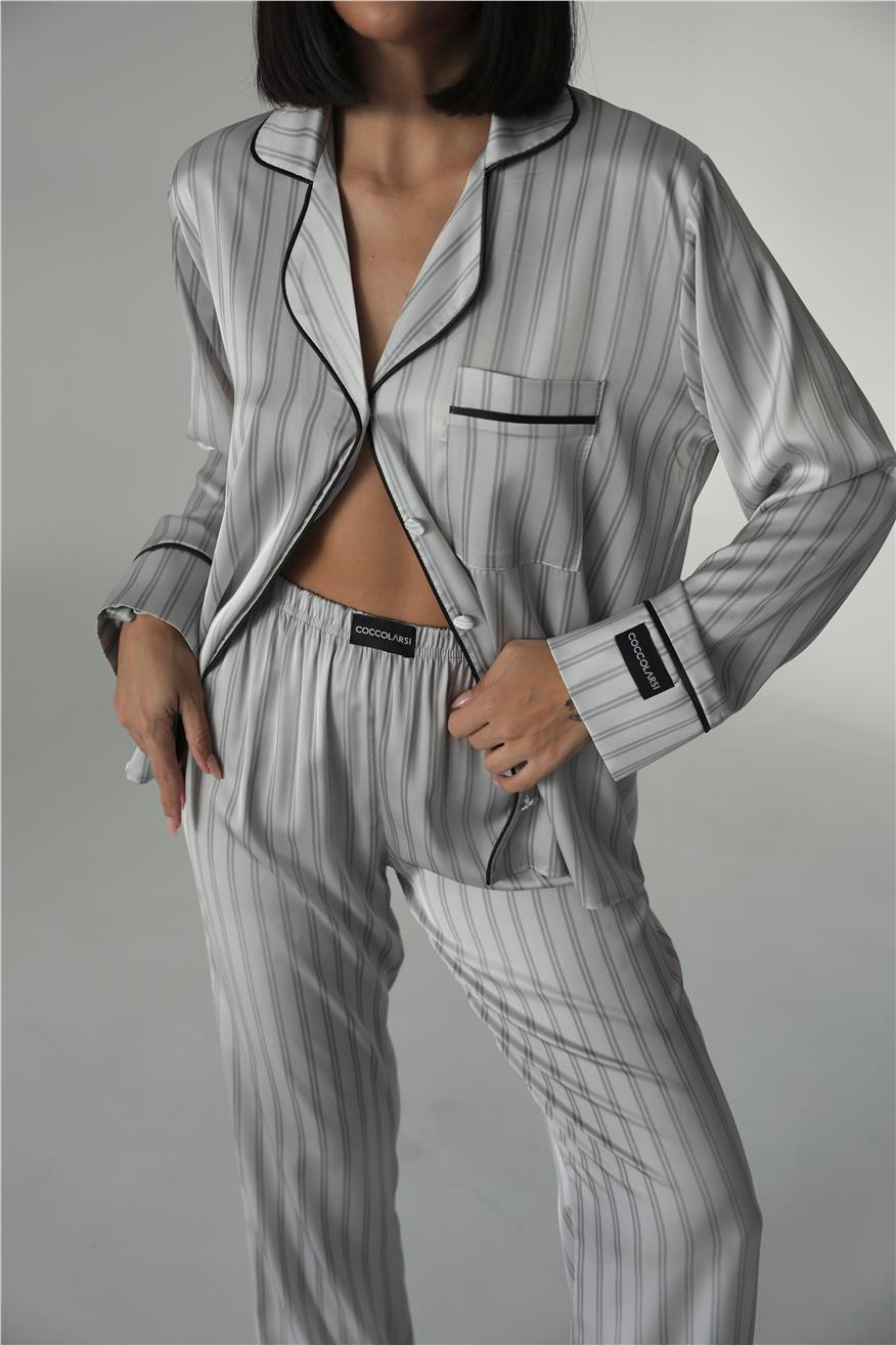Sogni Lineari Saten Uzun Pijama Takımı LDK07