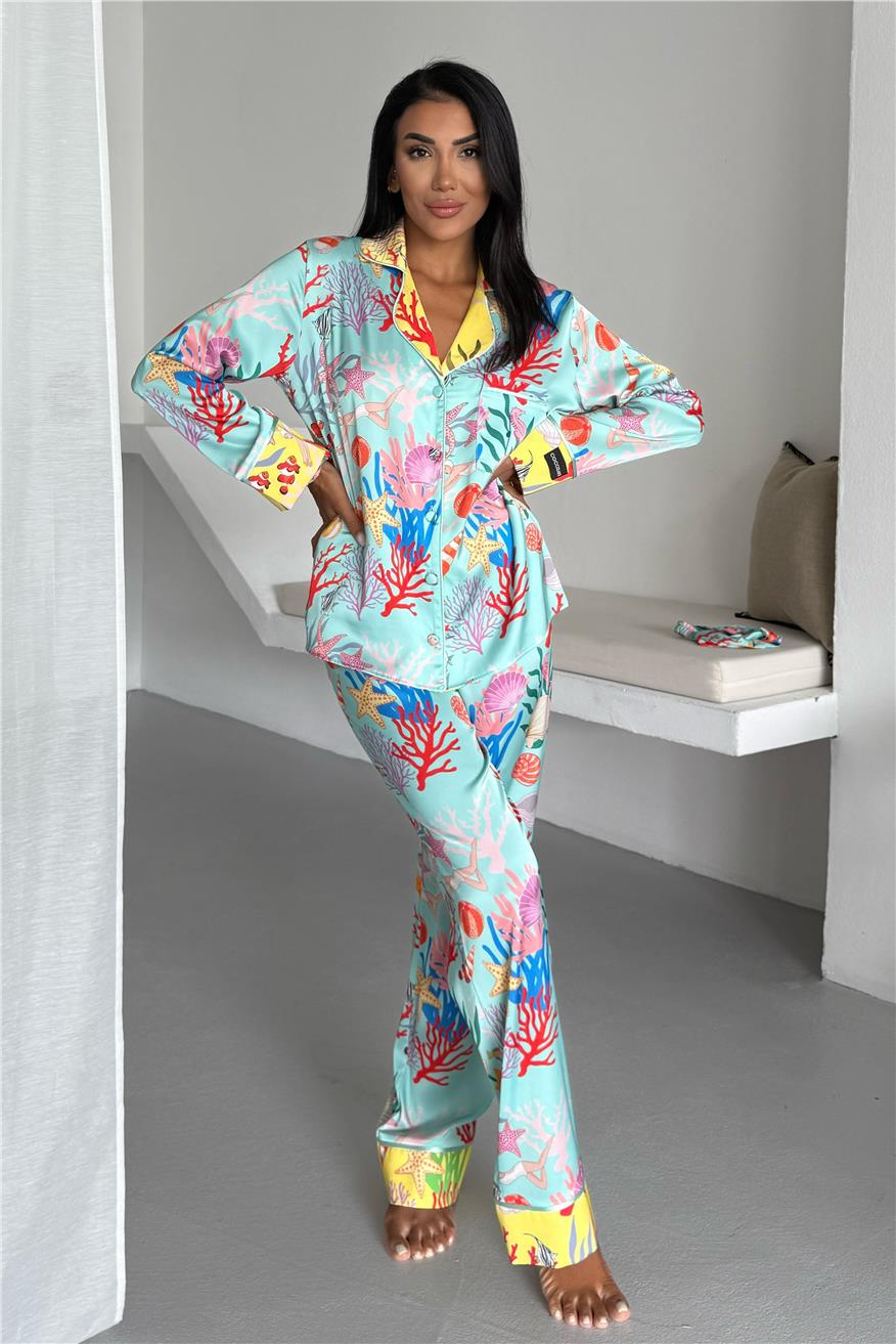 Viaggio Creativo Saten Uzun Pijama Takımı VCK0303 (1521-19-S)