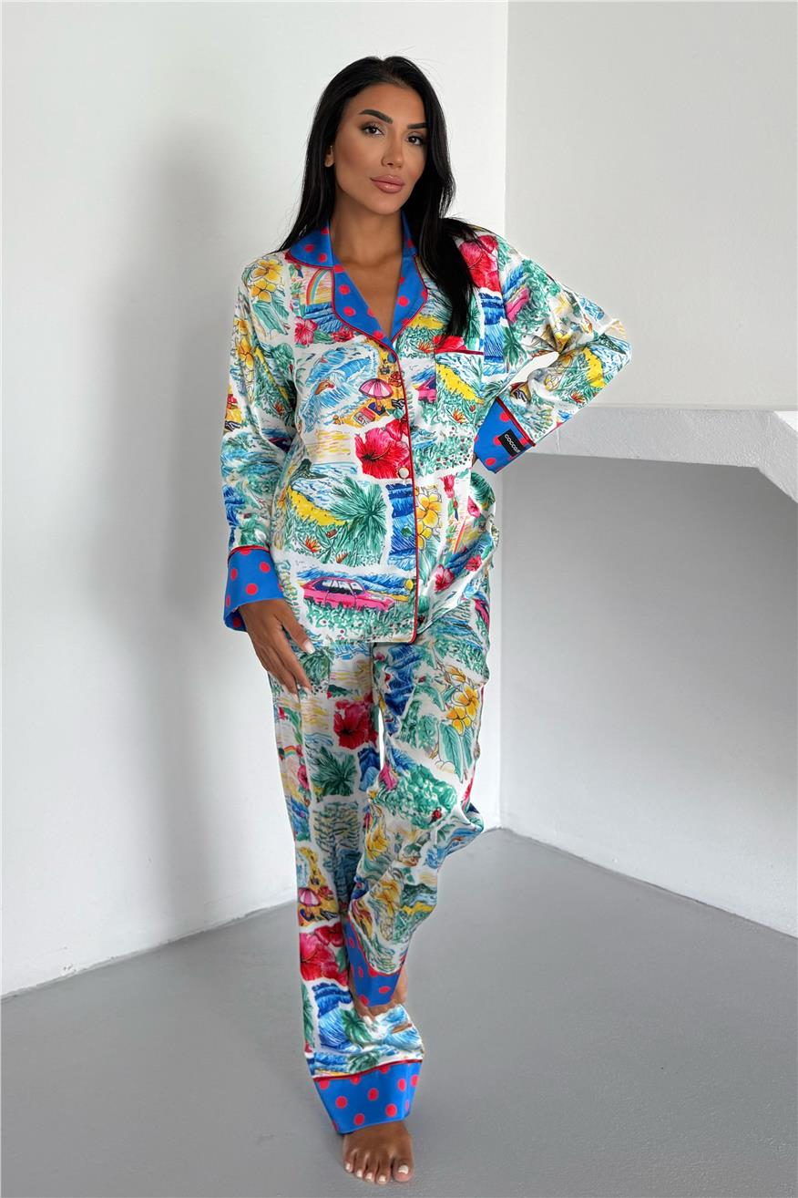 Viaggio Creativo Saten Uzun Pijama Takımı VCK0304 (1522-14-S)