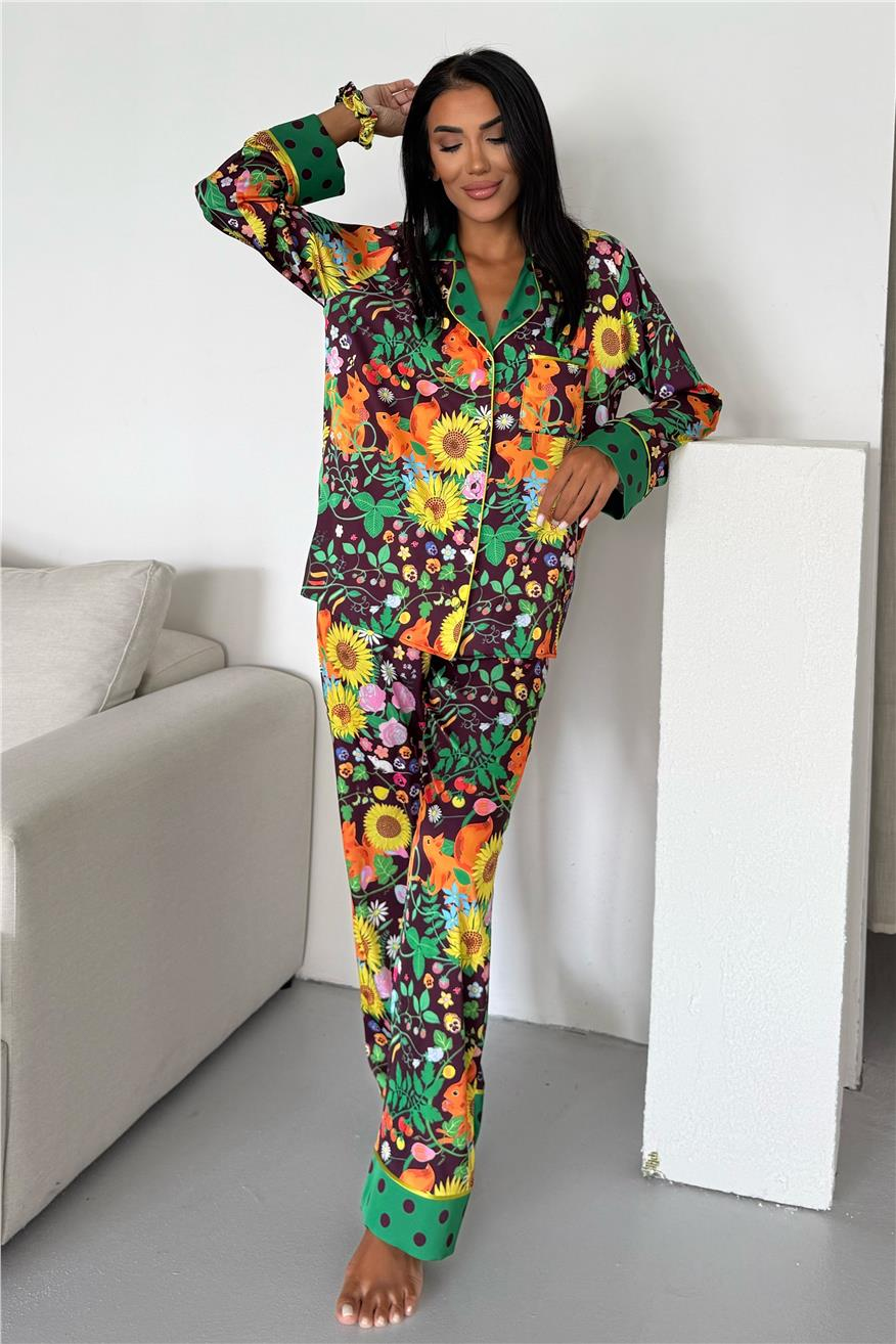 Viaggio Creativo Saten Uzun Pijama Takımı VCK0309 (1522-40-S)