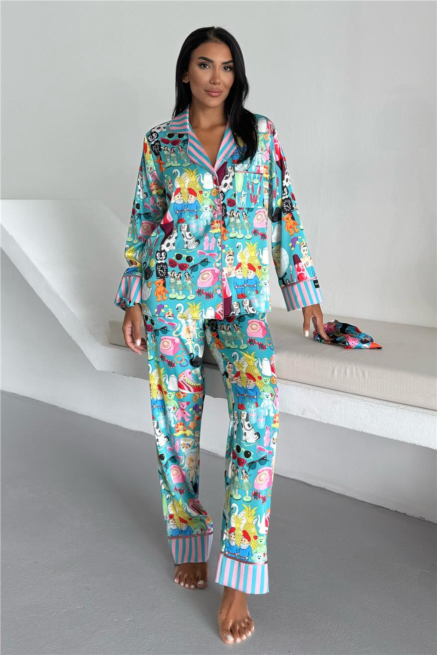 Viaggio Creativo Saten Uzun Pijama Takımı VCK0314